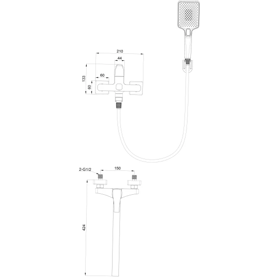 Аэратор, Металлическая розетка, Эксцентрики, Душевой шланг, Душевая лейка, Держатель для душевой лейки