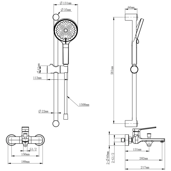 Крепление, Аэратор, Металлическая розетка, Эксцентрики, Душевой шланг, Душевая лейка, Держатель для душевой лейки, Штанга душевая