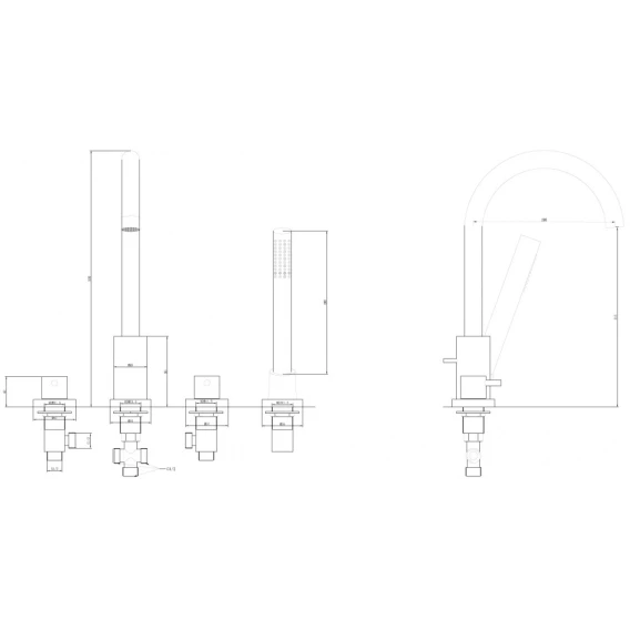 Смеситель для ванны Wonzon & Woghand Muse Corno WW-A30902-CR с душевым гарнитуром, хром