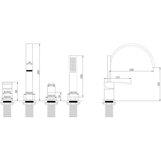 Крепление, Аэратор, Душевой шланг, Душевая лейка