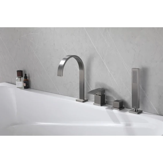 Смеситель на борт ванны Abber Wasserfall AF8613NG с душевым гарнитуром, никель