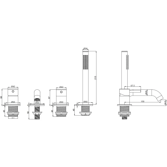 Крепление, Аэратор, Гибкая подводка, Душевой шланг, Душевая лейка