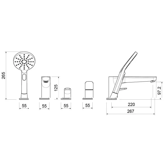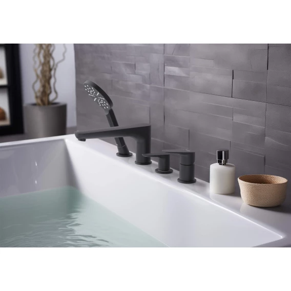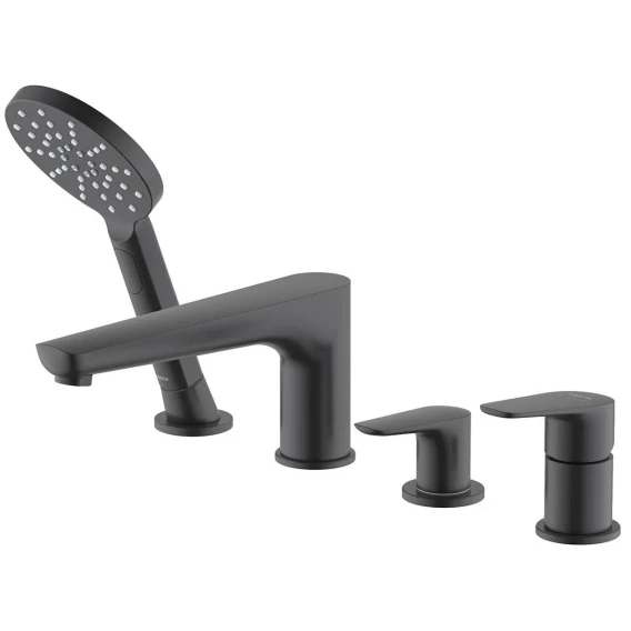 Смеситель на борт ванны Aquatek Бетта AQ1148MB с душевым гарнитуром, черный матовый