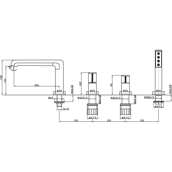 Крепление, Аэратор, Душевой шланг, Душевая лейка, Держатель для душевой лейки