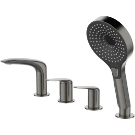 Смеситель на борт ванны Cezares Metauro METAURO-BVD4-GM с душевым гарнитуром, оружейная сталь матовый