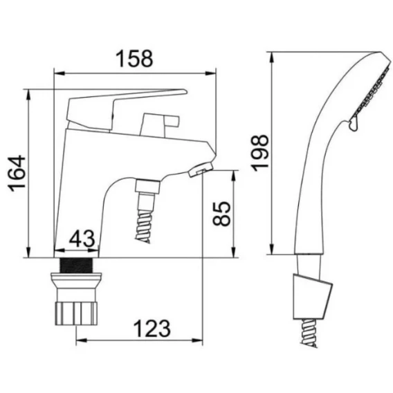 Аэратор, Гибкая подводка, Душевой шланг, Душевая лейка, Держатель для душевой лейки