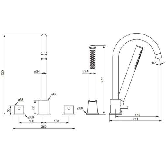 Смеситель на борт ванны Damixa Scandinavian Pure 360400000 с душевым гарнитуром, хром