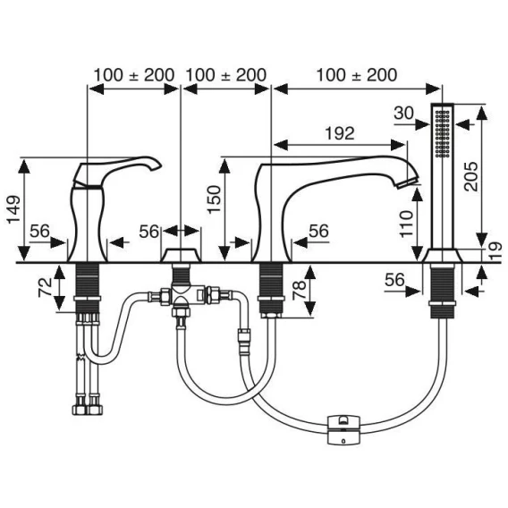 Крепление, Аэратор, Гибкая подводка, Душевой шланг, Душевая лейка