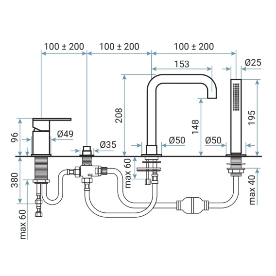 Смеситель на борт ванны Axor Uno 38436000