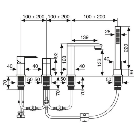 Крепление, Аэратор, Гибкая подводка, Душевой шланг, Душевая лейка