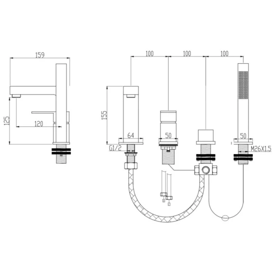 Крепление, Аэратор, Душевой шланг, Душевая лейка