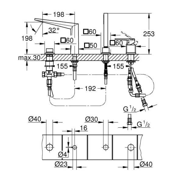 Смеситель на борт ванны Grohe Allure Brilliant 29523DC0 с душевым гарнитуром, суперсталь