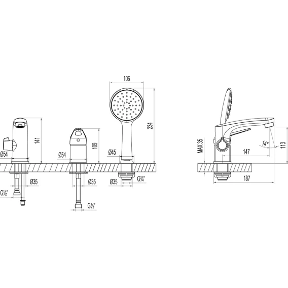 Смеситель на борт ванны Lemark Luna LM4147C с душевым гарнитуром, хром