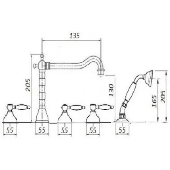 Смеситель на борт ванны Magliezza Grosso Bianco 50119-3-cr с душевым гарнитуром, хром