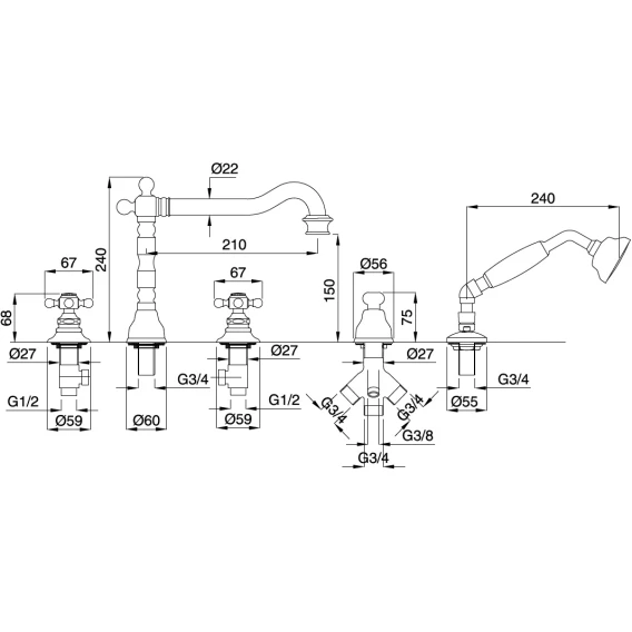 Смеситель на борт ванны Migliore Arcadia ML.ARC-8380.BR