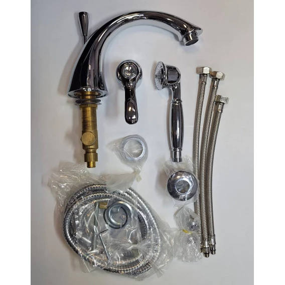 Крепление, Аэратор, Гибкая подводка, Душевой шланг, Душевая лейка, Держатель для душевой лейки