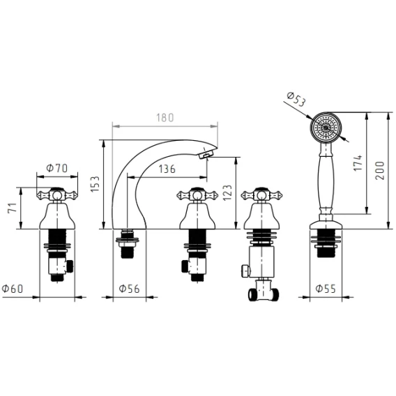 Крепление, Аэратор, Душевой шланг, Душевая лейка
