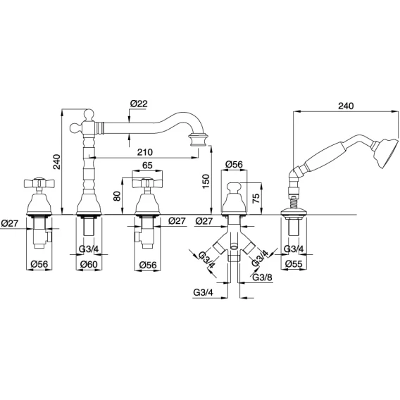 Смеситель на борт ванны Migliore Princeton ML.PRN-880.CR