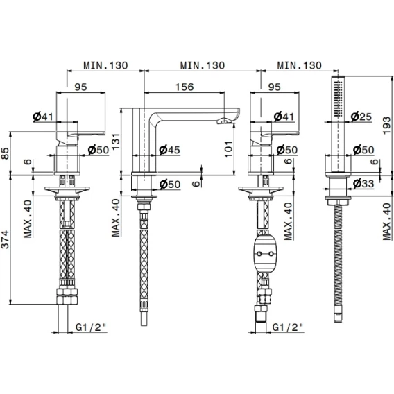 Крепление, Аэратор, Гибкая подводка, Душевой шланг, Душевая лейка