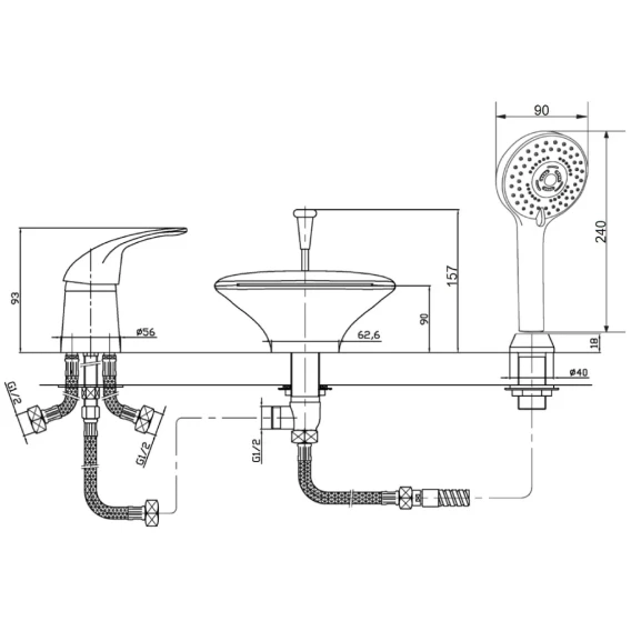 Крепление, Гибкая подводка, Душевой шланг, Душевая лейка
