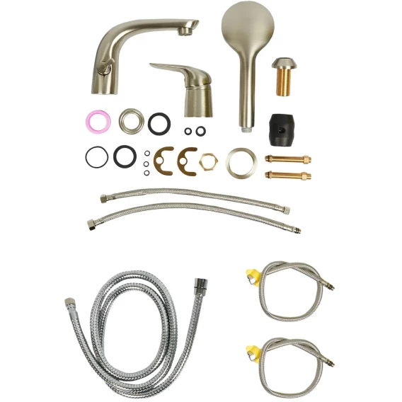Крепление, Аэратор, Гибкая подводка, Душевой шланг, Душевая лейка