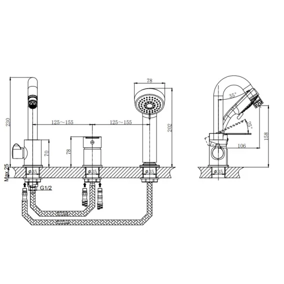 Смеситель на борт ванны Rush Tenerife TE2835-333 с душевым гарнитуром, хром