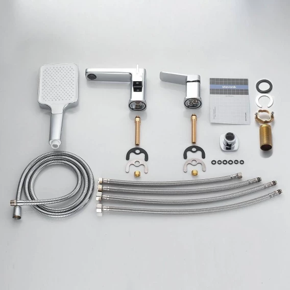 Крепление, Аэратор, Гибкая подводка, Душевой шланг, Душевая лейка