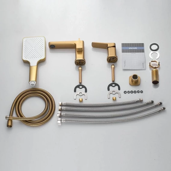 Крепление, Аэратор, Гибкая подводка, Душевой шланг, Душевая лейка