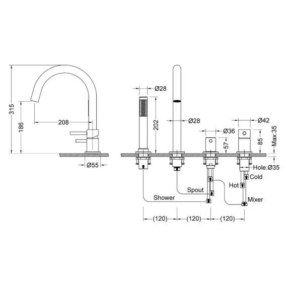 Крепление, Аэратор, Гибкая подводка, Душевой шланг, Душевая лейка