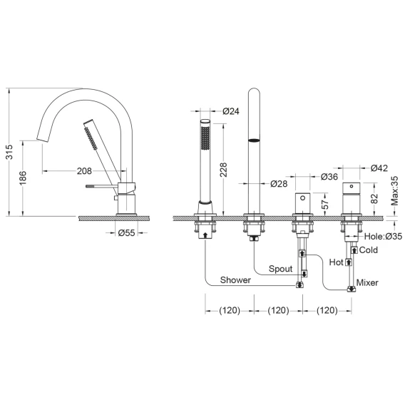 Длина излива 20.8 см