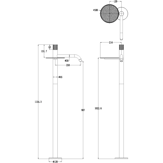 Смеситель напольный для раковины Boheme Stick Linea 120-MG.3 золотой матовый