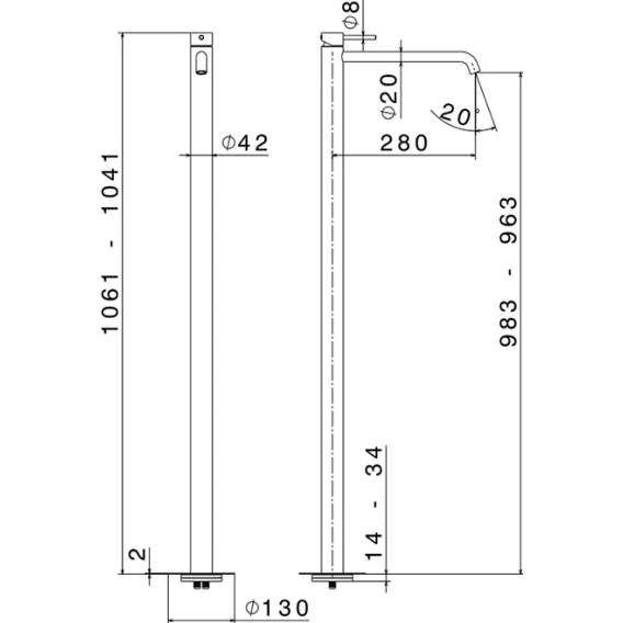 Высота излива 98.3 см