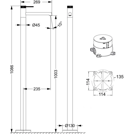 Высота излива 100.3 см