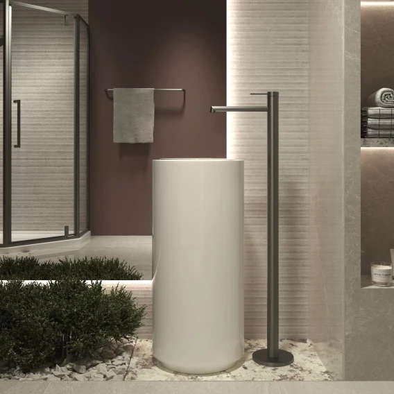 Смеситель напольный для раковины Vincea Rim VFBF-2R1GM вороненая сталь