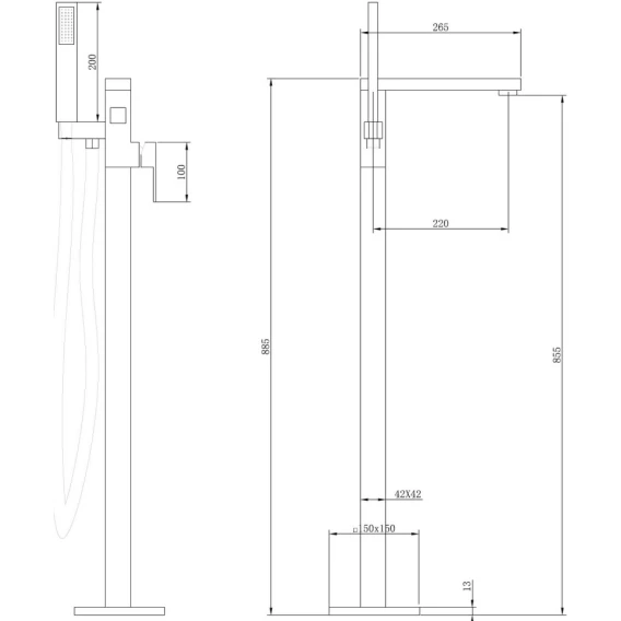 Аэратор, Душевой шланг, Душевая лейка, Держатель для душевой лейки, Скрытая монтажная часть