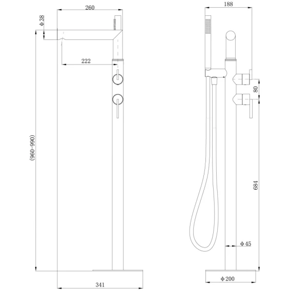 Высота излива 95.2 см