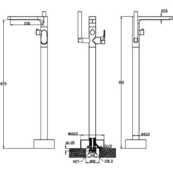 Смеситель напольный для ванны Boheme Spectre 459-MG золотой матовый