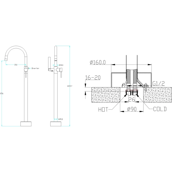 Смеситель напольный для ванны Boheme Uno 469-CR