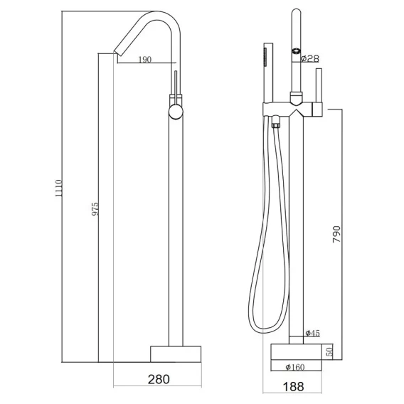 Аэратор, Гибкая подводка, Душевой шланг, Душевая лейка, Держатель для душевой лейки