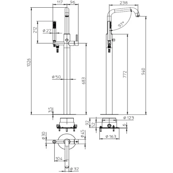 Смеситель напольный для ванны Bossini Teo Z00751.030 хром