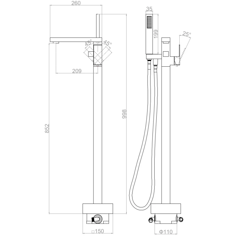 Аэратор, Душевой шланг, Душевая лейка, Держатель для душевой лейки, Скрытая монтажная часть