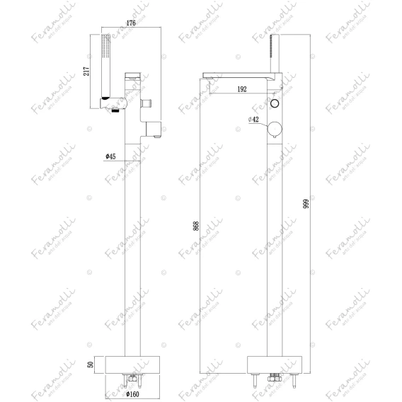 Смеситель напольный для ванны Feramolli Dante GS8829F CoolStart, графит матовый