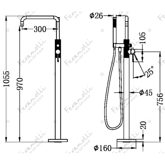 Смеситель напольный для ванны Feramolli Sole S360GB графит матовый