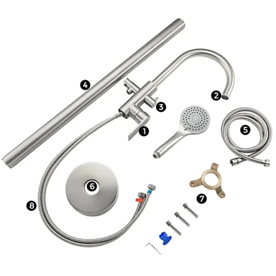 Аэратор, Гибкая подводка, Душевой шланг, Душевая лейка, Держатель для душевой лейки