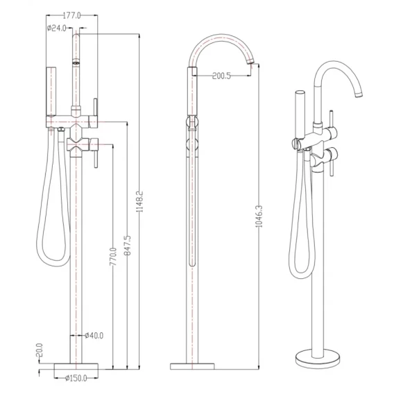 Смеситель напольный для ванны Grocenberg GB900BG графит