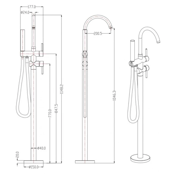 Смеситель напольный для ванны Grocenberg GB900BR