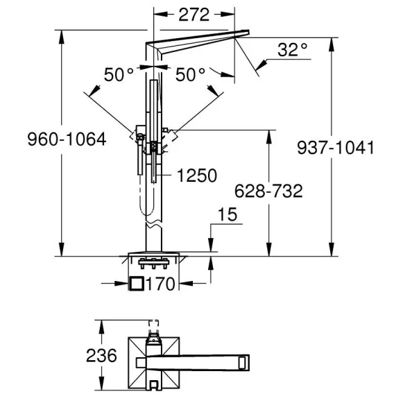Высота излива 104.1 см