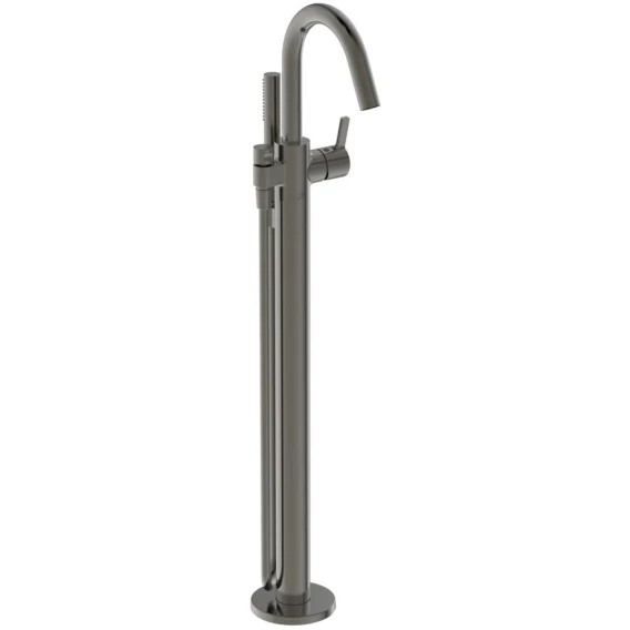 JOY Однорукоятковый напольный смеситель для ванны/душа, латунный корпус, состоящий из 2-х частей, аэратор Cache M24x1, керамический картридж FirmaFlow 38 мм, с функцией HWTC (ограничение максимальной температуры горячей воды), без функции CLICK, автоматическое переключение, металлическая рукоятка без индикаторов горячей / холодной воды, ручной душ Stick, шланг для душа Idealflex 1250 мм. Новый встраиваемый комплект №1 – вертикально регулируемый и подходящий для встроенной установки для пола 80-160 мм. Для монтажа с A6133NU (встраиваемый комплект)
