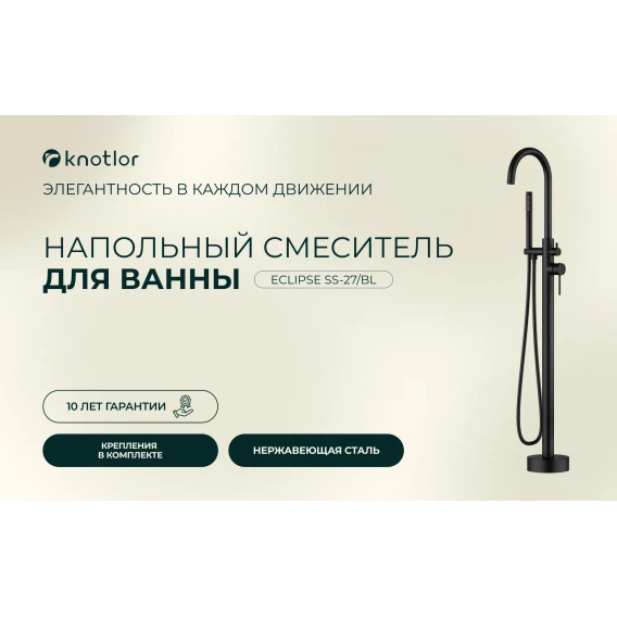 Смеситель напольный для ванны Knotlor Eclipse SS-27/BL черный матовый