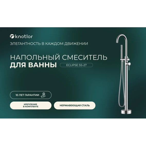 Смеситель напольный для ванны Knotlor Eclipse SS-27 нержавеющая сталь